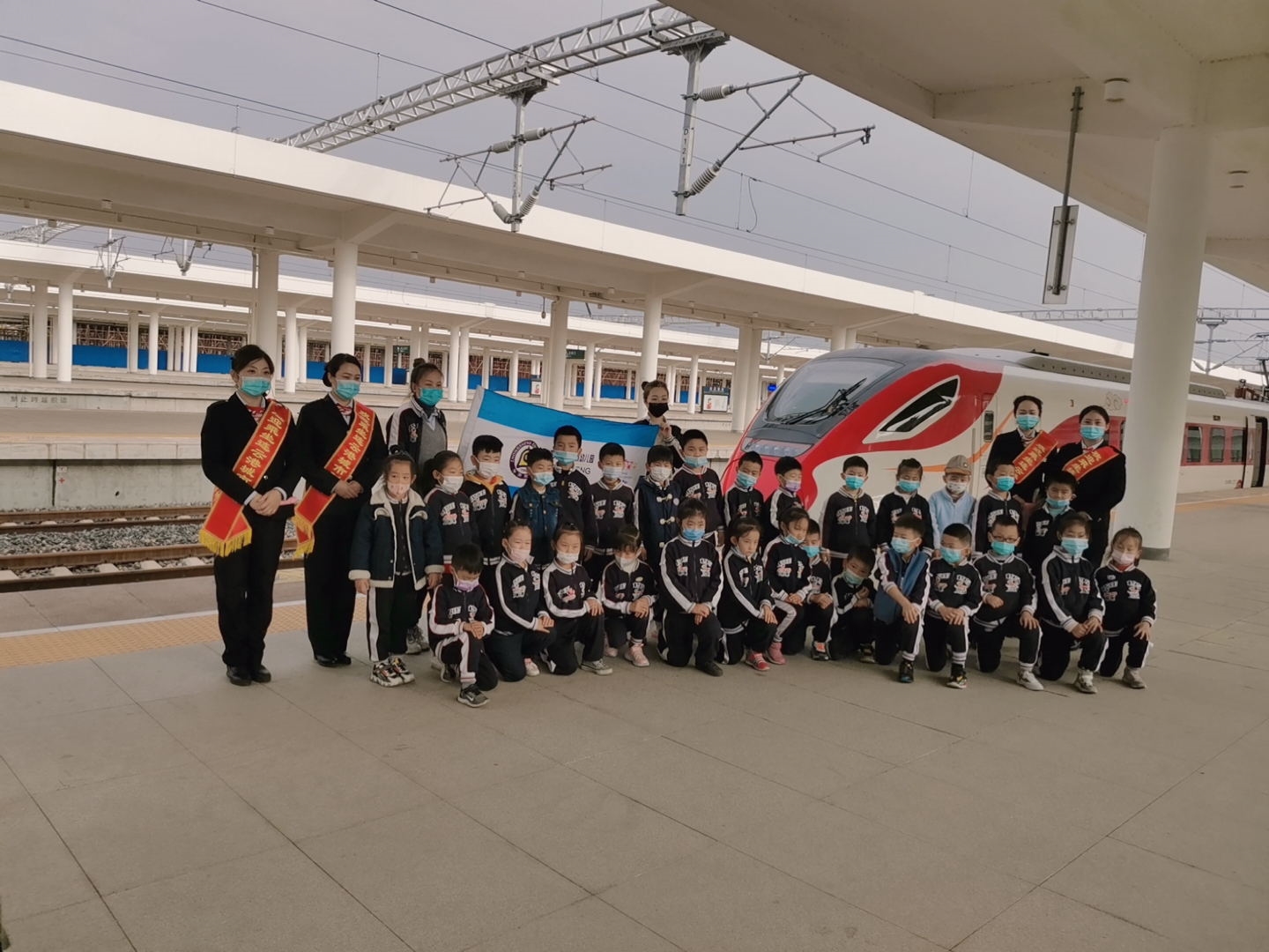 10月28日上午,鐘聲幼兒園的小朋友們按照約定時(shí)間,來(lái)到了連云港東站體驗(yàn)城市動(dòng)車。小朋友們穿著統(tǒng)一的園服,帶著興奮的表情和好奇的目光,在老師的引導(dǎo)下通過安檢進(jìn)入候車廳。檢票時(shí),城市動(dòng)車的工作人員帶領(lǐng)著小朋友們井然有序的進(jìn)入站臺(tái)候車。八點(diǎn)十分,當(dāng)小朋友們看見紅白相間,具有“美猴王”特色的列車緩緩進(jìn)站時(shí),開心地跳了起來(lái)。其中一位小朋友說(shuō)道:“我和爸爸媽媽經(jīng)常做火車去外地游玩,看過好多火車,可從來(lái)沒有看過這么漂亮的火車?。 ?/span>