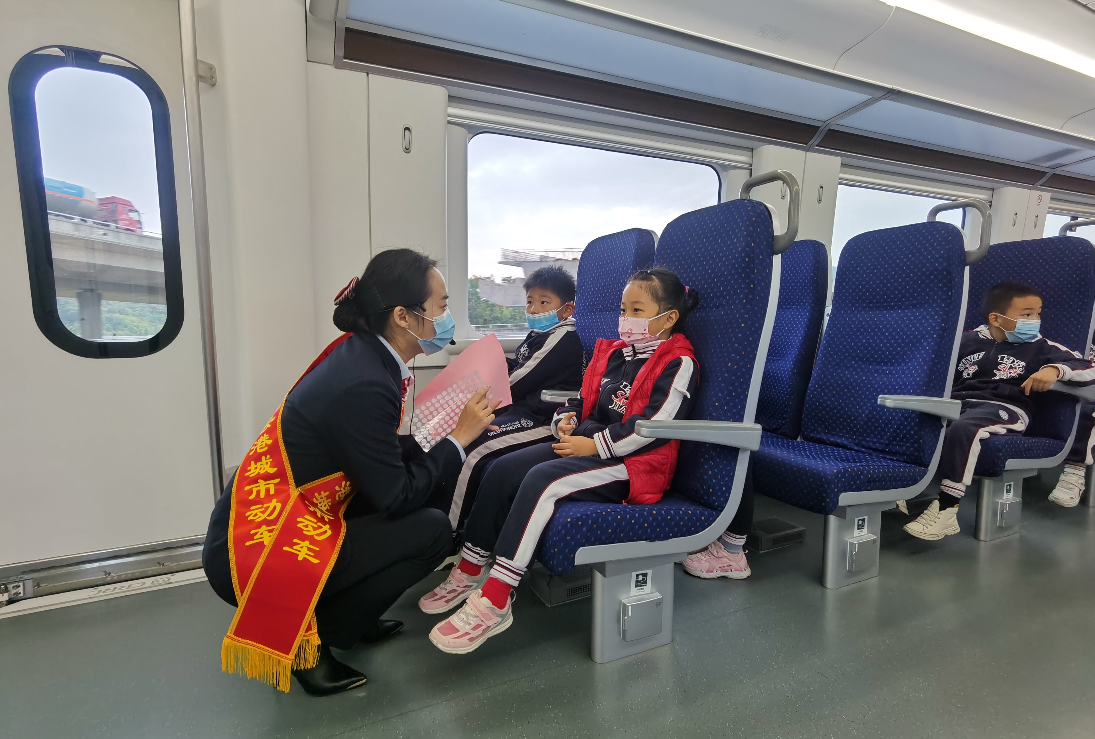 在列車行駛途中,城市動(dòng)車工作人員給小朋友們?cè)敿?xì)講解了車站車貌的概況、乘車的禁帶品以及動(dòng)車上不能吸煙的原因等。在講解到乘坐火車禁帶品時(shí),小朋友們很感興趣,紛紛踴躍發(fā)言,有疑惑的積極詢問,城市動(dòng)車工作人員一一作了解答?;顒?dòng)結(jié)束后,幼兒園園長(zhǎng)表示:這次活動(dòng)非常有意義,不僅讓小朋友們體驗(yàn)了舒適的城市動(dòng)車,也讓他們對(duì)城市動(dòng)車有一定的了解,并向他們普及了關(guān)于乘坐火車時(shí)不能帶違禁品的相關(guān)知識(shí)。